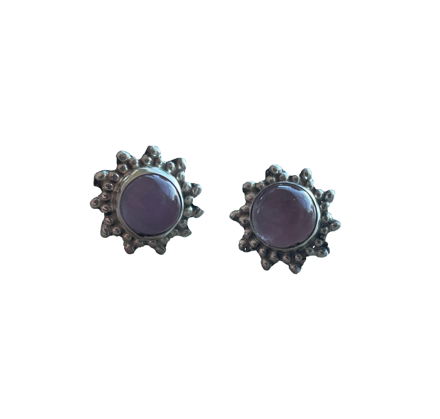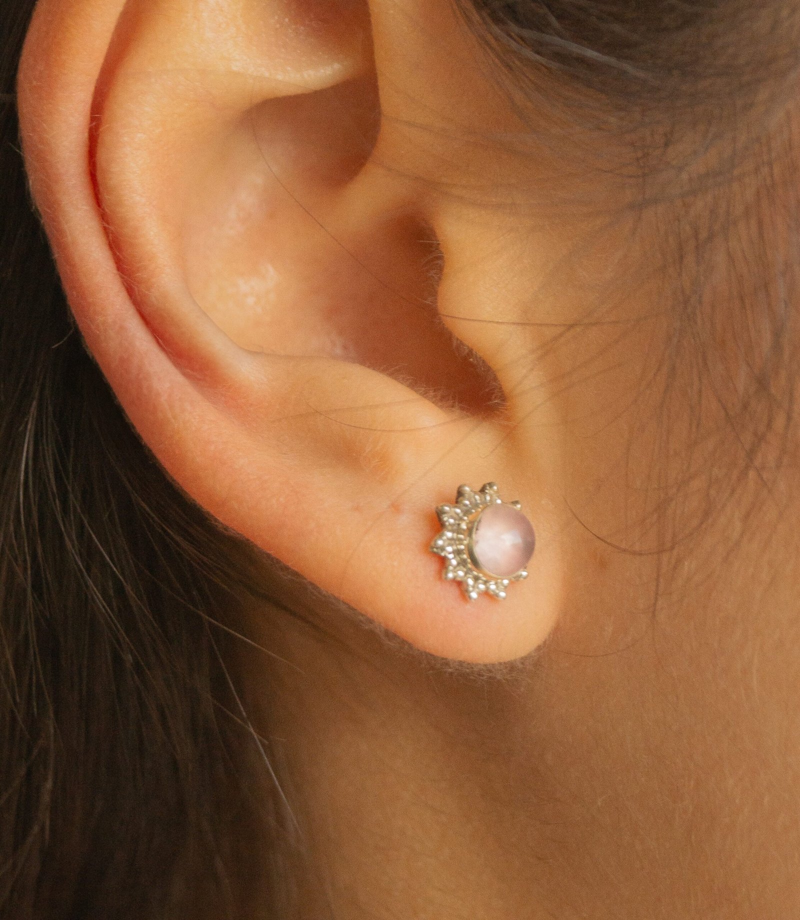 Aro de piedra natural cuarzo rosa con tornillo, todo de Plata italiana 925