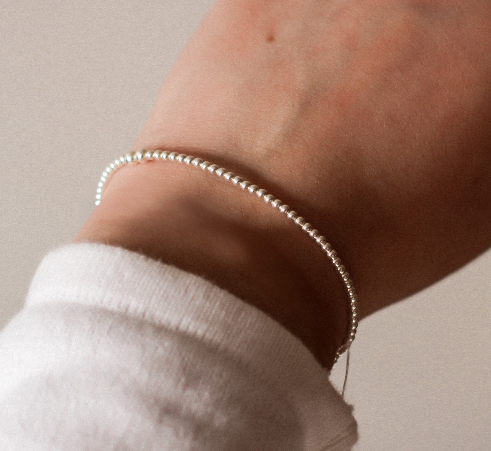 Pulsera elasticada de mostacillas de plata italiana 925.